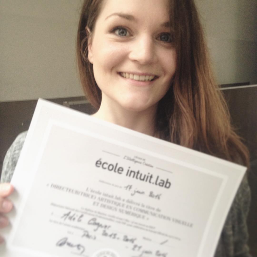 « Ensuite, toujours à ETIC, j’ai préparé en 2 ans, un BTS de Communication visuelle avec option graphisme, édition, et publicité. Je suis montée à Paris par opportunité – je pouvais loger chez ma grande sœur qui y vivait – une fois sur place, j’ai cherché une autre école, je ne me sentais pas prête à travailler… J’ai donc entrepris un cursus sur une année pour obtenir un Bachelor Design Global. Puis, j’ai préparé sur une année, un MasterDirection artistique en alternance avec un job dans une agence de com où j’occupais le poste de directrice artistique junior. J’ai énormément appris pendant cette dernière année, le rythme en agence était intense. »