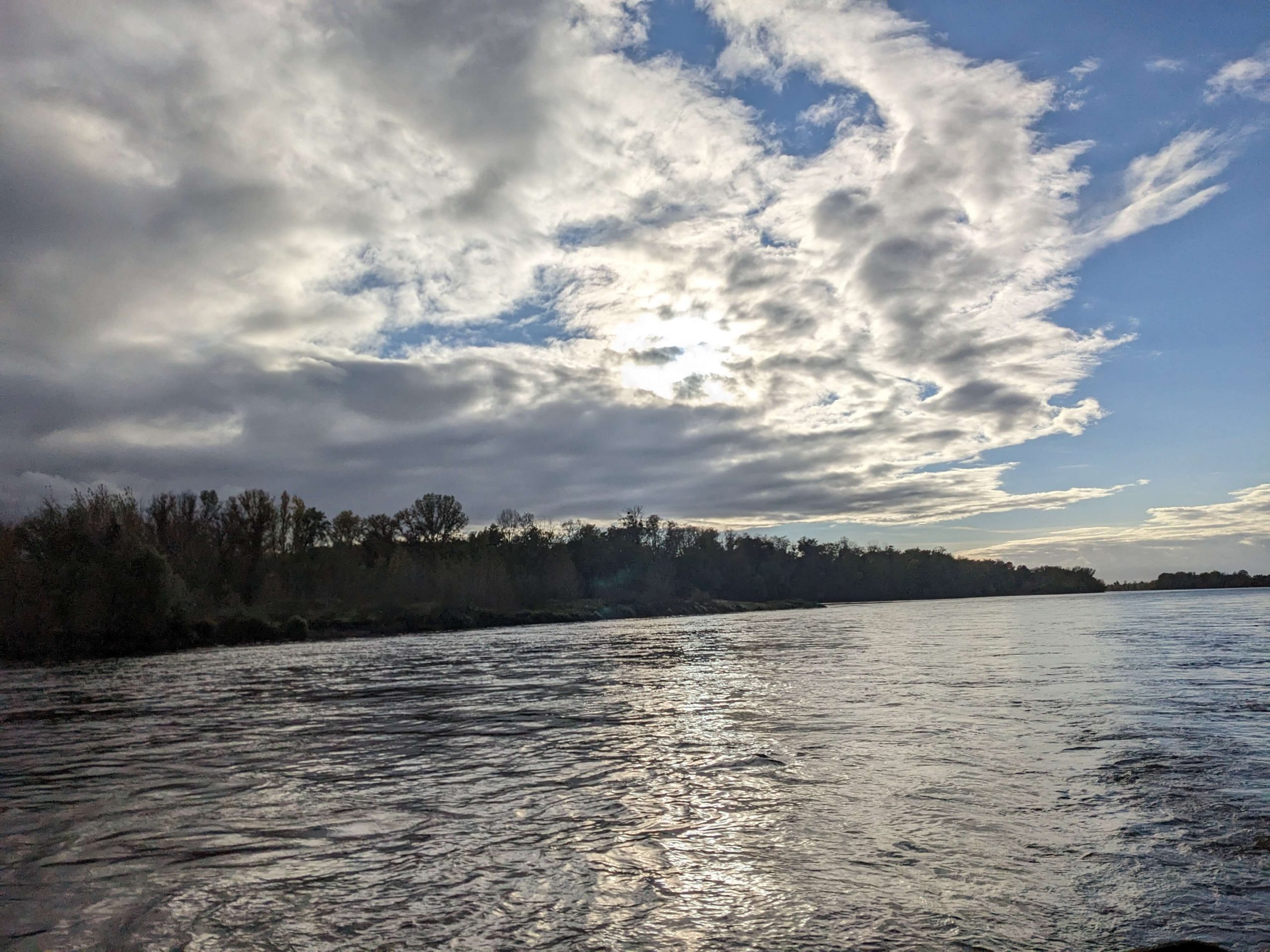 Il fait beau mais un petit vent froid taquine nos oreilles. Les tables sont installées sous un barnum et se couvrent bientôt de boissons et de mets apportés par les uns ou les autres. Les assiettes se remplissent, les conversations s’animent. On se retrouve ou on fait connaissance. Chacun partage un moment simple et joyeux avant de profiter de la beauté du fleuve.